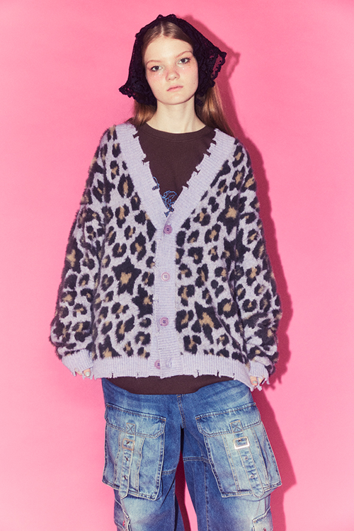 FLUFFY STAR LEOPARD KNIT CARDIGAN