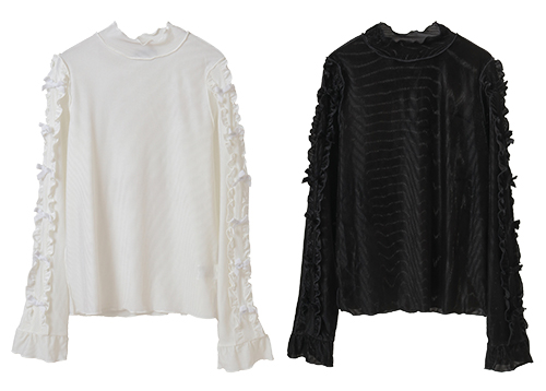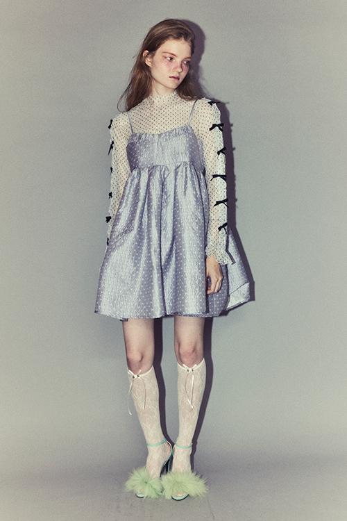両袖のフリル・リボンのディティール使いもポイント。