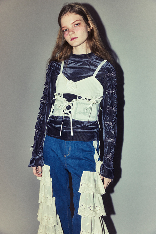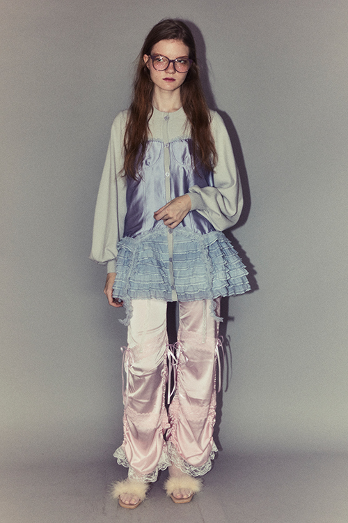 ランジェリーディティールを取り入れたパンツ。