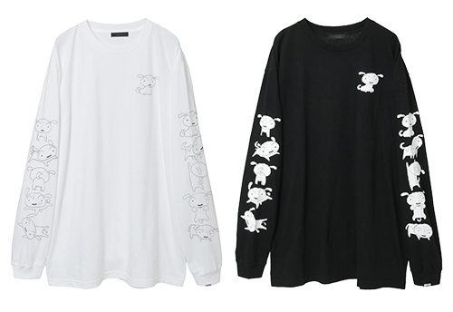 左右で異なるポーズがキュートなシロのロンT。