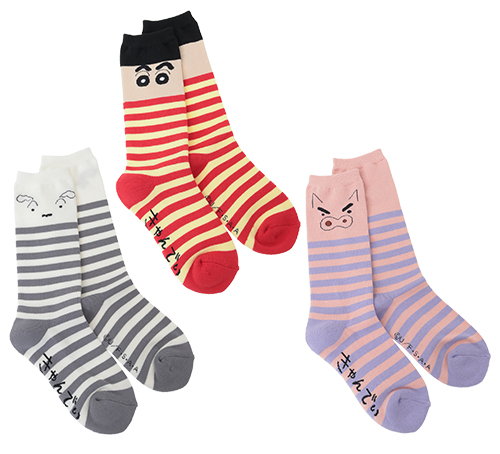 キャラクターの顔をジャガードで表現したボーダーソックス。