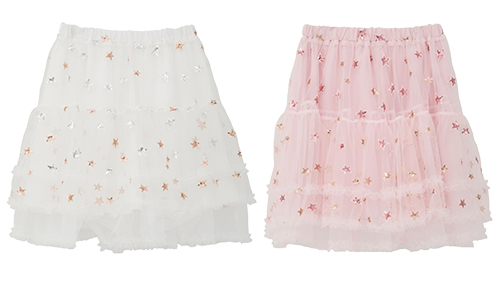シャイニーな星柄のチュールを使用したスカート。