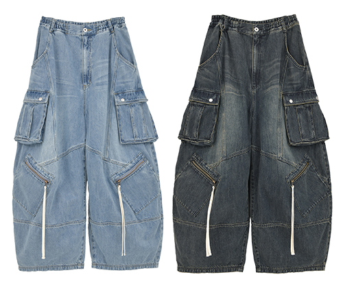 トレンド感のあるカーブシルエットのデニムパンツ。