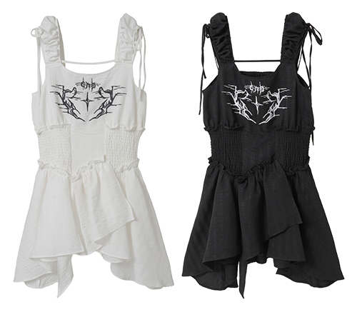 ダークコアな雰囲気の刺繍が目をひく一着です。